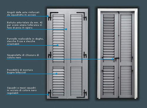 Come per i serramenti varie tipologie di materiale ( pvc, alluminio e legno) ed una vasta gamma di modelli e finiture capaci di integrarsi con le pił svariate strutture esterne, architettoniche ed ambientali.